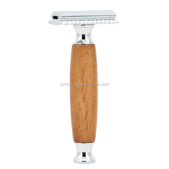 पुरुषों के लिए लकड़ी के हैंडल बारबर रेजर डबल एज सुरक्षा रेजर